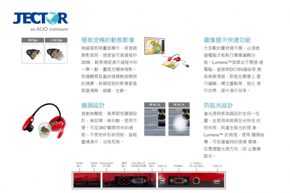 JECTOR於2001年開始致力於推展數位教學輔助硬體設備,一路由資訊融入教學至前瞻智慧教室建置,是台灣在地的教育品牌。2021年5月5日JECTOR成為友達集團一份子,以開創視界實現顯示大未來為目標,由台灣出發成為全球品牌。