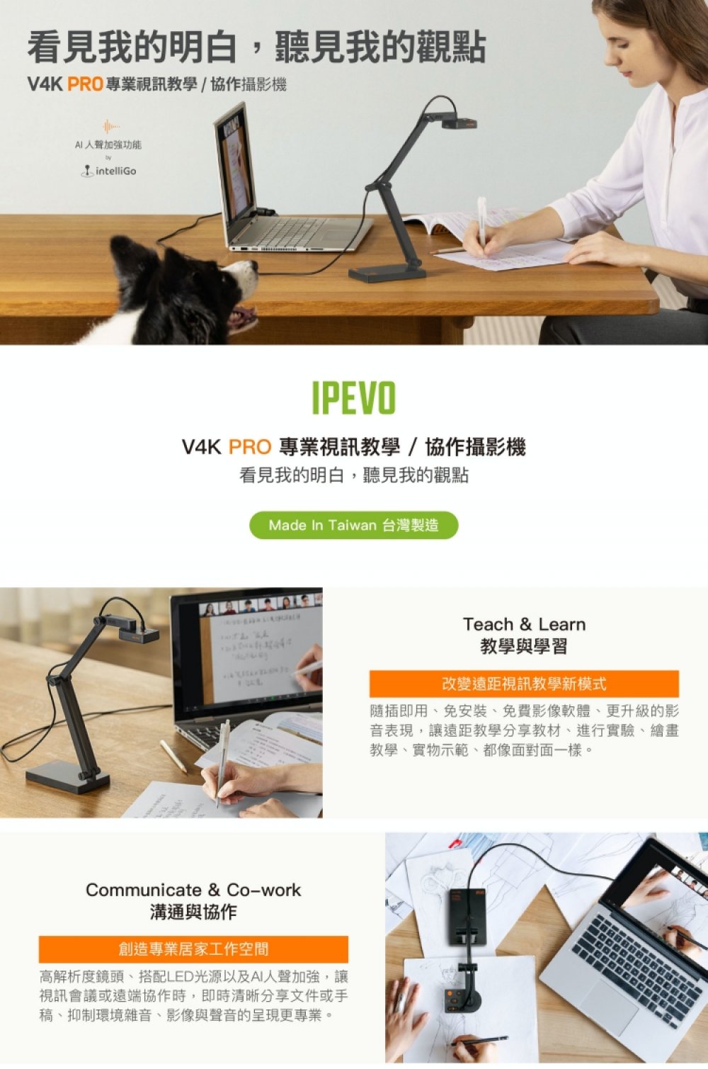 IPEVO愛比科技是臺灣設計的原生品牌,顛覆傳統昂貴複雜又笨拙的教學用實物攝影機的思維,重新定義與設計出一系列簡單、靈活輕巧又易於入手的專業視訊教學協作攝影機。愛比科技一直專注在改變視訊溝通的樣貌、為教育領域及客戶提供了提升溝通效率的視訊及影像軟硬體解決方案。