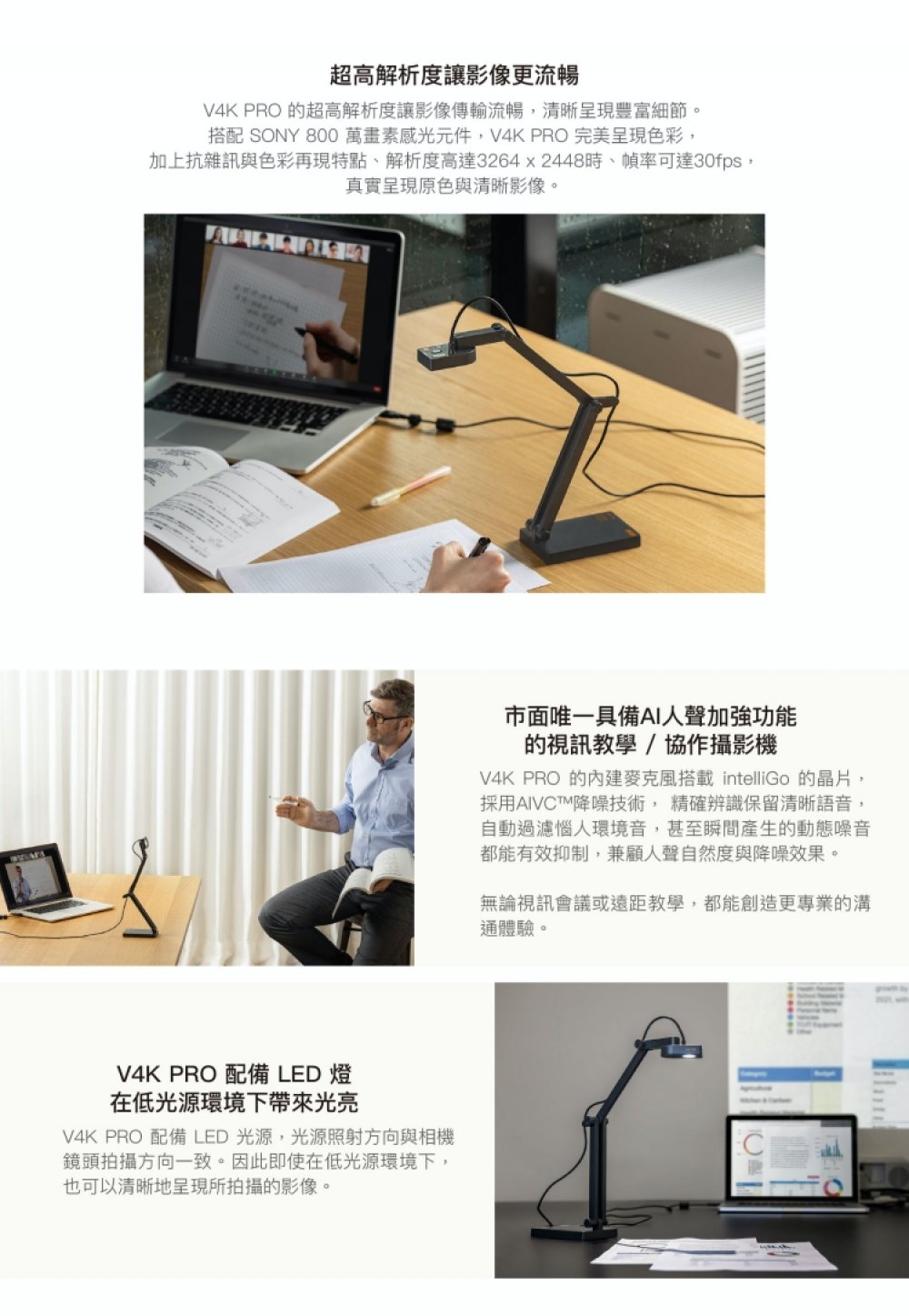 市面唯一具備AI人聲加強功能的視訊教學/協作攝影機