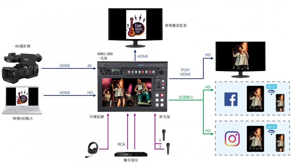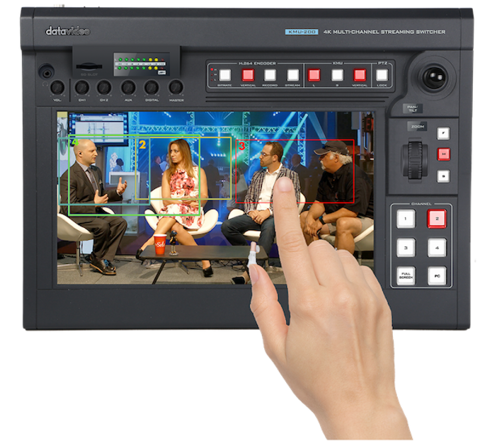 KMU-200是一款一體機的解決方案,可使用單個4K攝影機生成Full HD虛擬多機位影像。 KMU-200使用大型觸摸螢幕進行操作。 通過手指動作和滑動,您最多可以控制4K圖像的五個以上的畫面,就像來自不同的攝影機一樣。