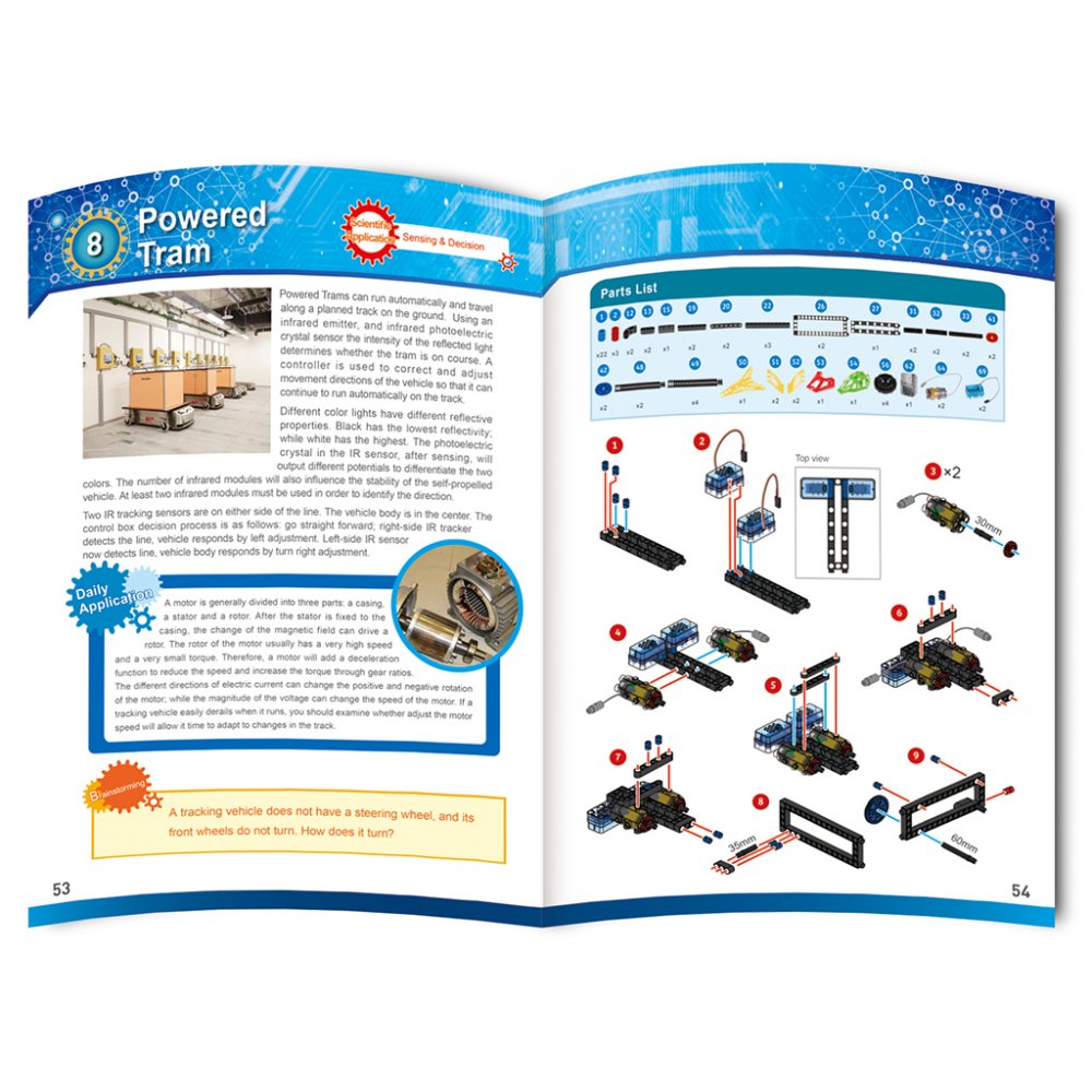 由淺入深,循序漸進學習,每個模型程式皆有不同科學原理應用。4堂專題製作課程,挑戰與創新。並從組裝積木到程式編寫一氣呵成。
