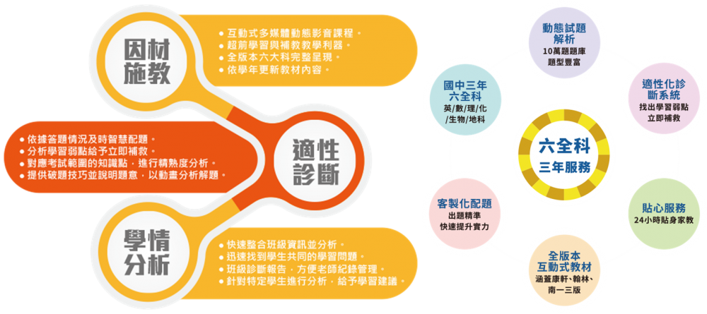 將教室搬進家裡,透過網路連線就能和名師面對面上課,搭配使用獨家的「適性化診斷系統」,讓孩子即時掌握自己的弱點與落點,找到問題對症下藥,真正提升學習效率。