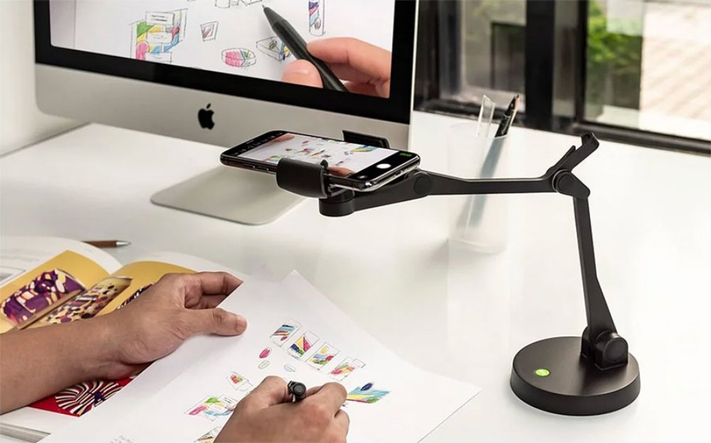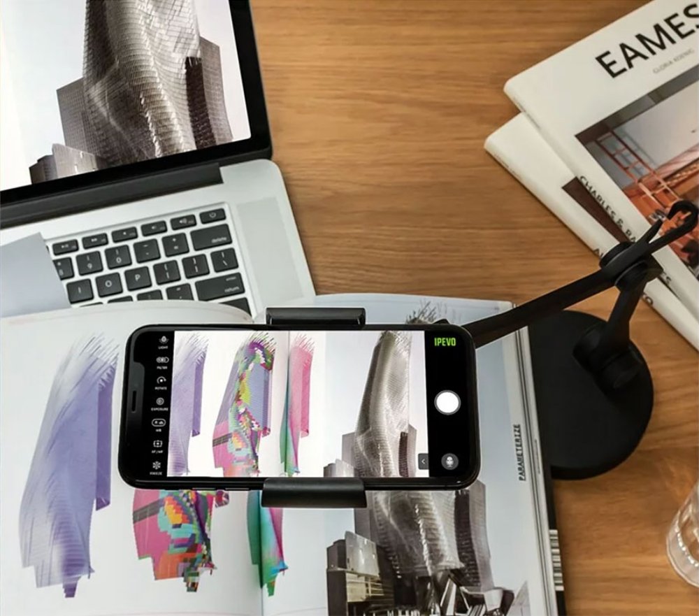 • 360度旋轉的鏡頭底座、堅固的多關節懸臂,可以自由的快速調節手機高度和觀看角度