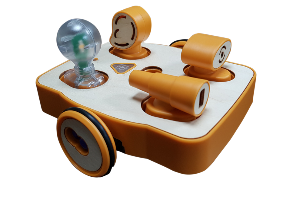 KIBO的架構,適合幼兒抓握與組裝,配合不同的感知器與零件,讓孩子在課程中達成不同的任務