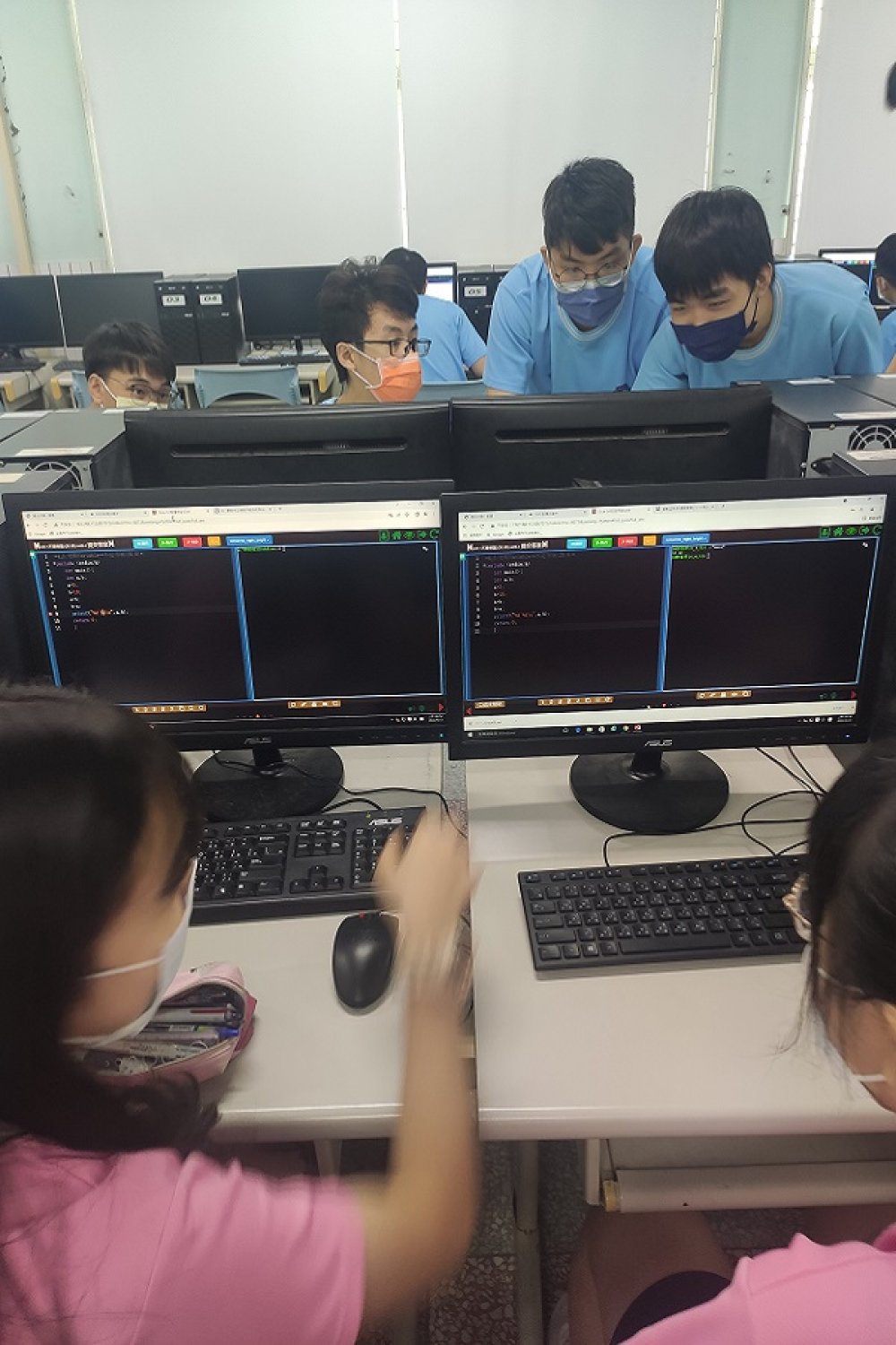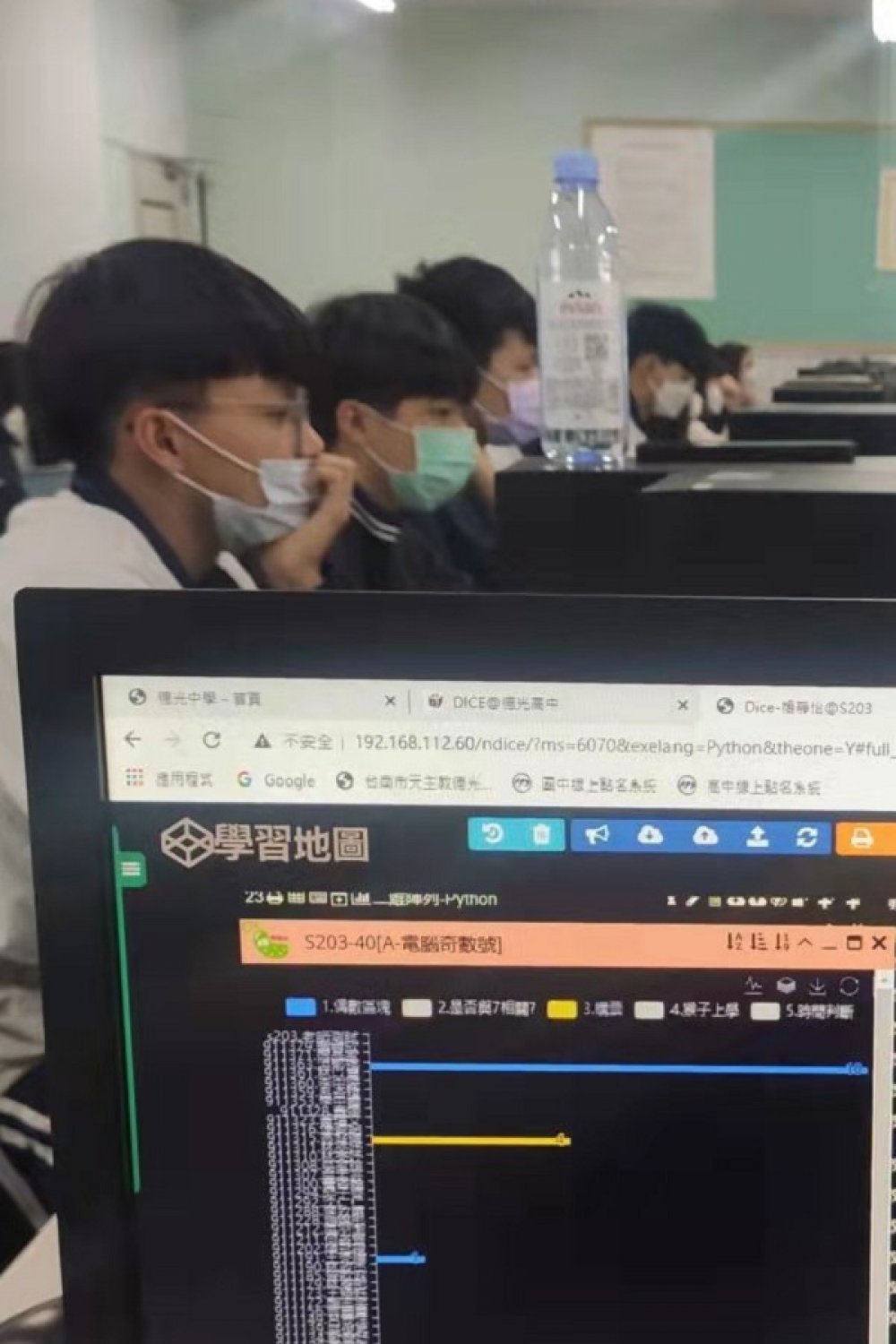 德光高中是一所完全中學,程式設計國中必修與高中必修課分別選用DICE的Python或C語言作為課程,高中選修課則是以APCS 3級為目標開設課程,重補修課程也使用DICE作為線上重補修工具。