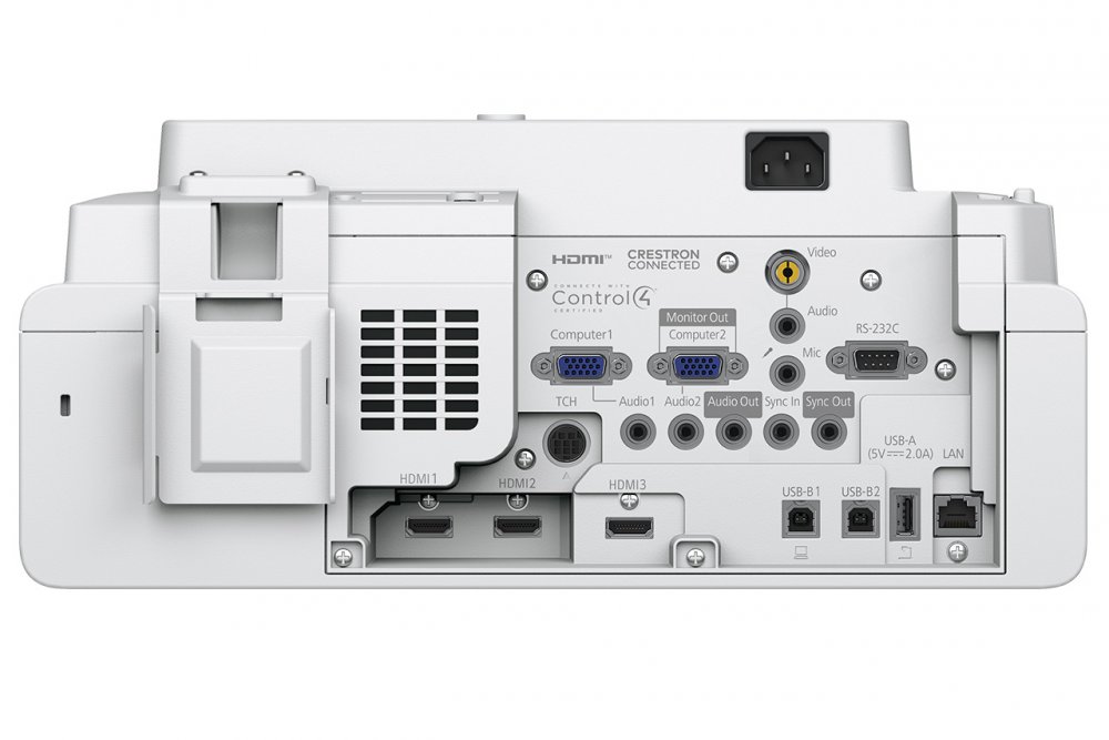 反射式超短焦投影設計,僅需60.1公分即可投射100吋大畫面。教學不受光影干擾更順暢。內建無線模組,支援無線及鏡像投影功能。
