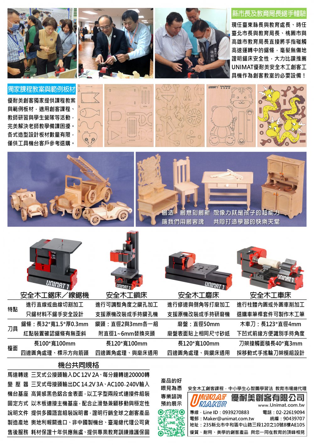 更多產品資訊與預約到校體驗展示,請到優耐美創客官網:www.Unimat.com.tw