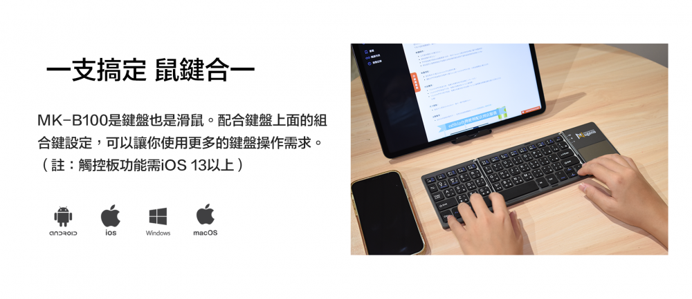 藍芽三折觸控鍵盤
