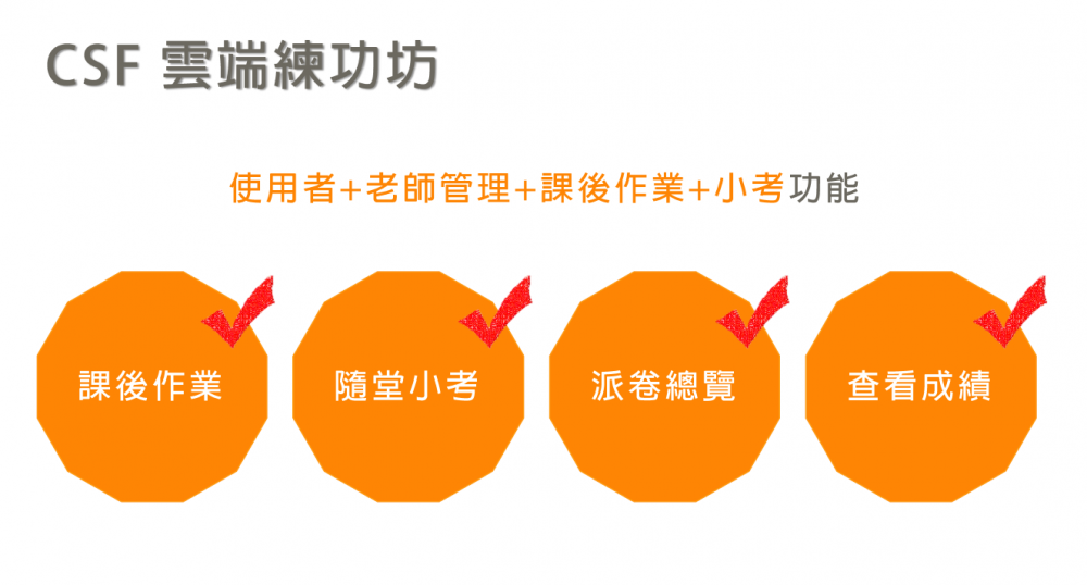 雲端練功坊為學生最佳學習輔具,老師最佳管理平台,CLV老師管理功能,提供不同階段多項功能,讓老師教學省時更有效率。