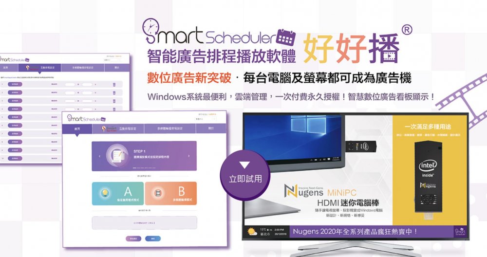Windows智慧型數位廣告機,完整的Windows系統,如同一台大型的電腦,最熟悉的介面,最易上手的操作,一機多用,可使用常見的Windows軟體工具亦可搭配SmartScheduler好好播廣告排程軟體