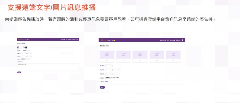 美型鏡面/落地移動/功能強大/一機多用/快速編輯/簡易上手/遠端管理/訊息推播/現場畫面/線上線下/離線播放/數位智慧/內容委製/年約包套