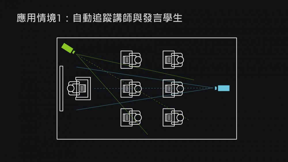 例如,為了自動追蹤並拍攝講師與發言學生的影像,兩台CI-T21H攝影機可分別裝設在教室前後。講師和學生可分別拿著搭配AM-360跟蹤定位器的麥克風,兩台攝影機可個別進行追蹤,不會互相干擾。當兩台攝影機與麥克風都連接至AREC智慧錄播站時,錄播主機可同時錄製或直播講師與發言學生的融合畫面,完整呈現課堂內容。