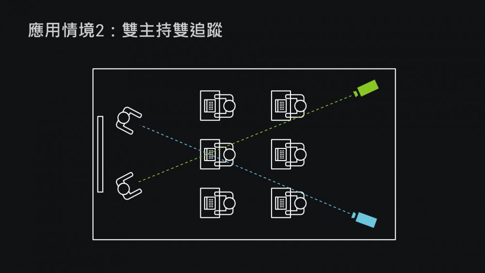 可依場景需求搭配配戴式或麥克風追蹤定位器