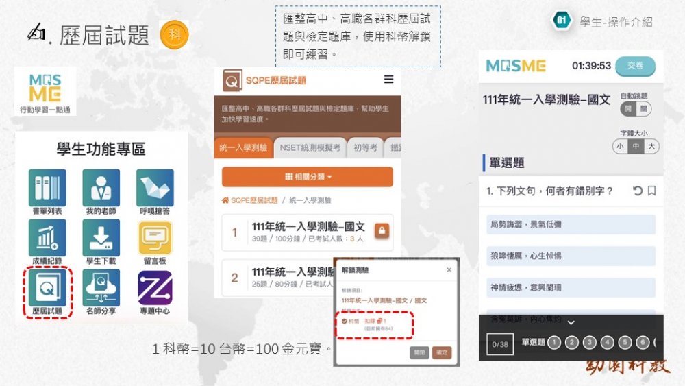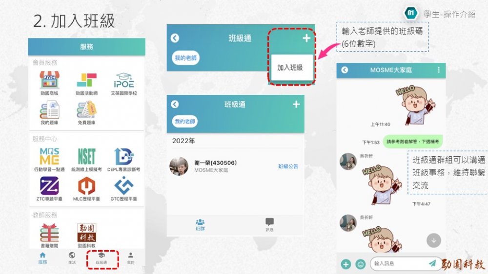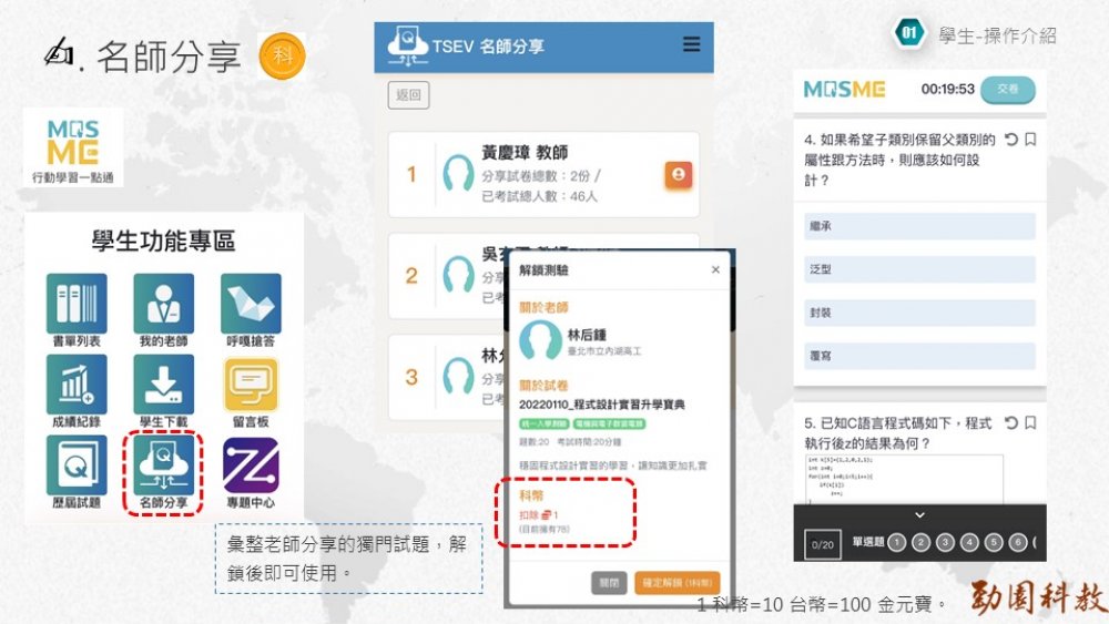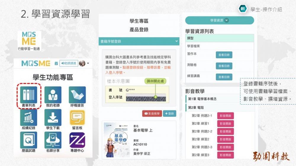 1. 平板教學的最佳體現:提供數位學習最佳方案,由勁園科教集團根據25年教學服務經驗,根據台灣教師的需求,自行研發MOSME互動教學軟體,並搭配台科大圖書豐富的數位內容,是唯一提供自行開發學習平台和豐富數位內容的專業教育團隊。