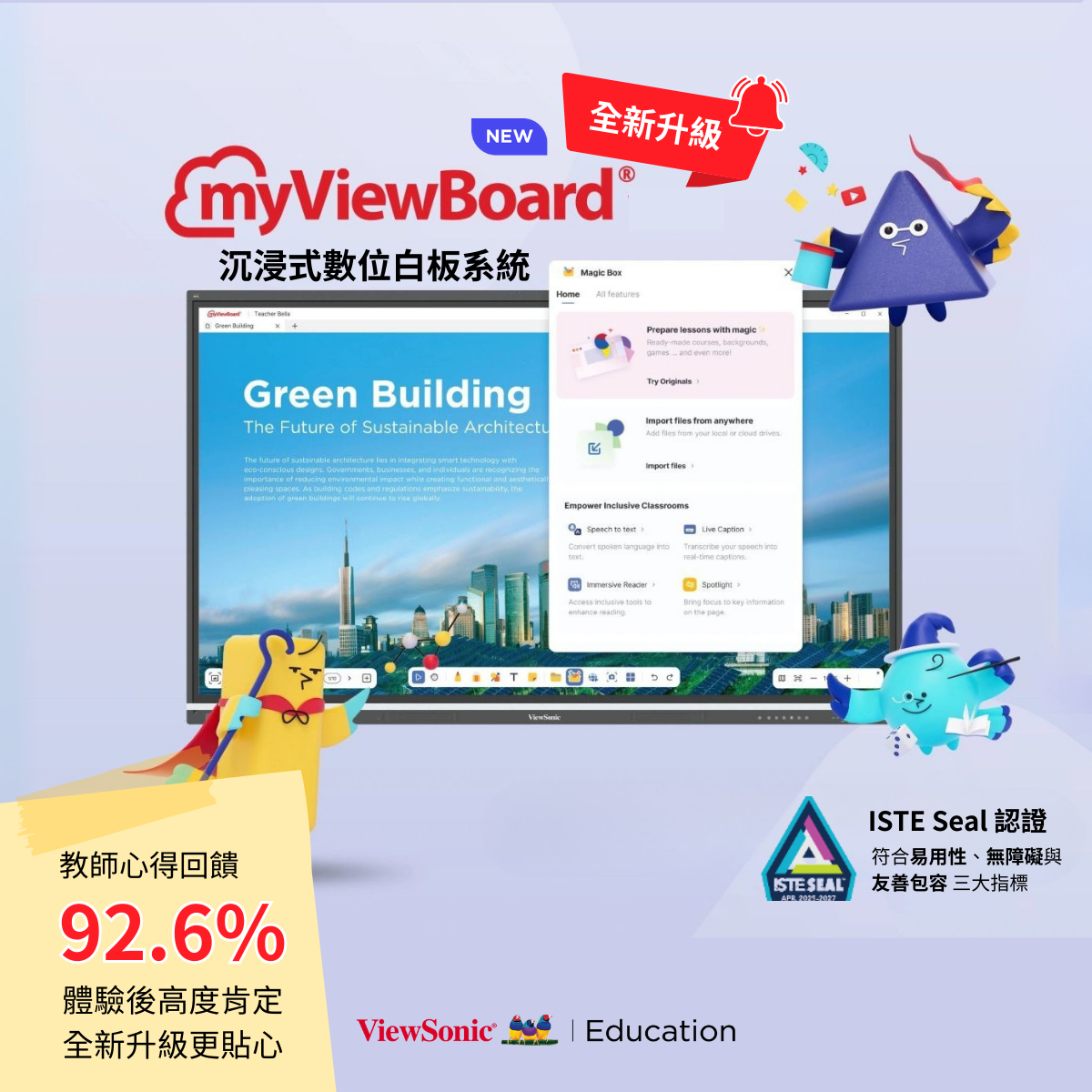 因應全球數位轉型趨勢,教育數位化近幾年快速發展,能夠提升教育者與學習者之間溝通模式的互動電子白板將變得至關重要。ViewSonic率先推廣整合環境建置、師資培訓、課程設計的全方位EdTech理念,將科技真正落實教學現場,讓科技真正為教育轉型服務。搭配ViewBoard的myViewBoard軟體解決方案,透過軟體、硬體整合及完整的生態圈,提供最佳使用者體驗,並能支援如Amazon Web Services、Microsoft Azure、Google for Education、Intel Unite的解決方案。ViewSonic董事長暨執行長朱家良期許:「孩子是台灣未來的希望,投資教育就是投資台灣的未來。讓科技成為教育的支點,只要孩子想學、老師想教,我們會和教育界一起努力,讓孩子與世界站在同一個起跑點上。」