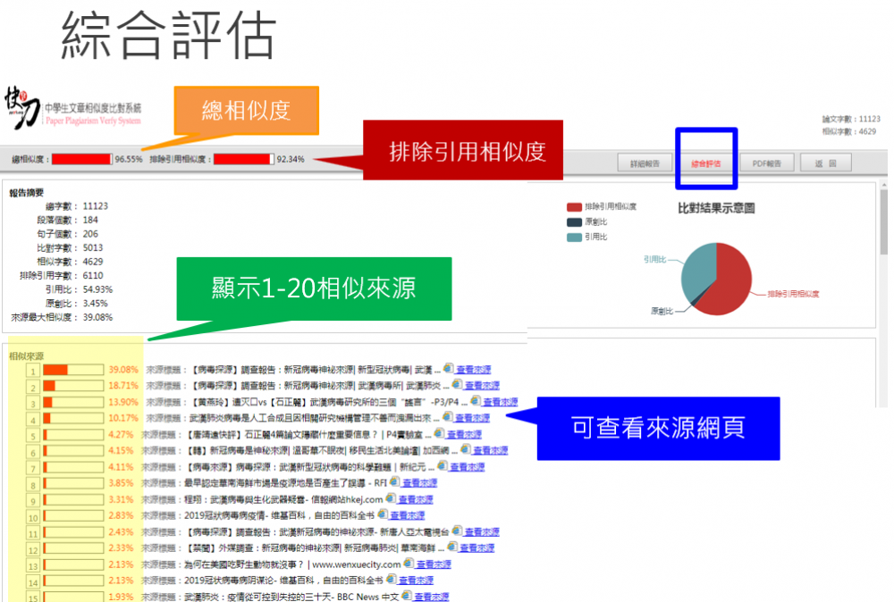 快刀是一款專門用來比對「閱讀心得」「小論文」抄襲相似度的利器,檢查同學交的讀書心得、小論文有沒有抄襲、模仿、改編的問題?輕鬆快速又正確,完成作業審核繁瑣的抄襲比對工作,幫助老師您把關,洞察學生的文章相似度,以防止各項抄襲問題,快刀是一款專門用來比對「閱讀心得」「小論文」抄襲相似度的利器做好預防工作,比事後補救省事,近年有多所高中,開始使用快刀,來確保同學文章品質,特別是一些高中的家長會,很關心抄襲問題,為了確保公平性,也自掏腰包承租快刀,這點是我們沒料到的。