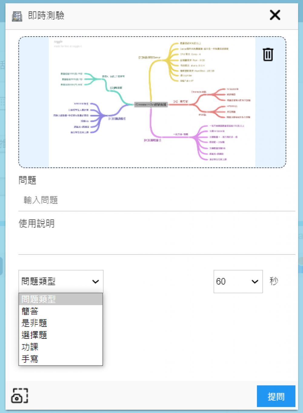 測驗或搶答題,支援手寫作答及自動儲存答案