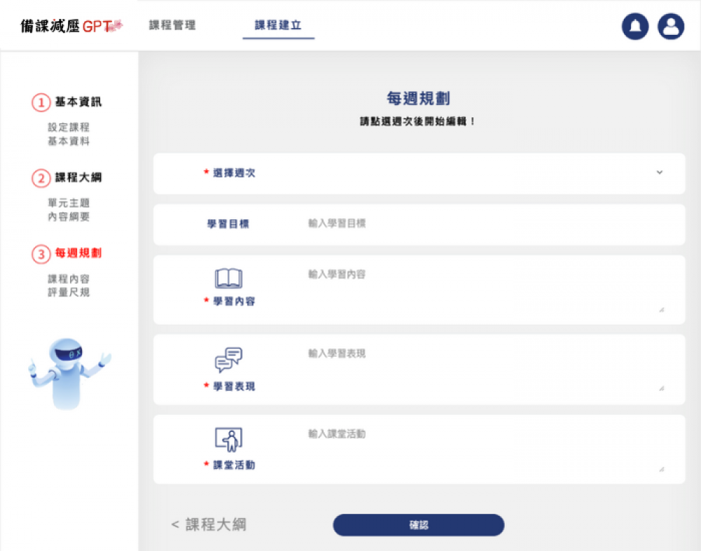 備課減壓GPT是一套結合教師備課專業需求與ChatGPT的教學應用系統,專為教師量身打造,幫助老師快速設計課程,並確保學生能夠達到目標核心素養和能力,減輕老師備課的壓力,並將更多時間聚焦於教學現場的互動與反饋。