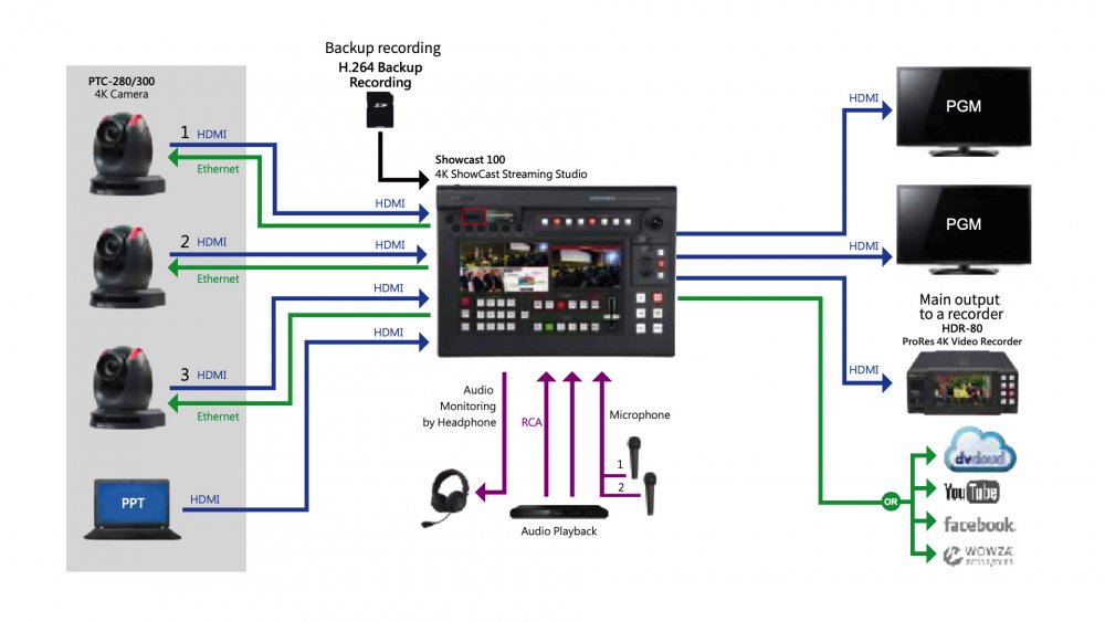 Datavideo SHOWCAST 100 是一款卓越的4K 4通道觸控導播機,它集成了導播、字幕、攝影機控制、串流直播、觸控屏幕、錄影以及混音等七大功能於一身。這個傑出的教育工具具備令人矚目的14英寸大型觸控屏幕,操作起來快捷直觀,就像使用平板電腦一樣。SHOWCAST 100採用一鍵一功能的設計,簡化了操作流程,無需複雜學習過程,即刻享受專業級導播系統的便捷。教育者們可以輕鬆掌握影像切換、字幕疊加、攝影機控制等多項功能,無論是在教室內還是線上教育中都能輕鬆應對。此外,內置的4K 50/60p支持以及高分辨率和流暢畫面將提升您的教學體驗。SHOWCAST 100 的多功能性和易用性使它成為教育者的得力助手,助力創造出精彩而引人入勝的教學內容。無論您是傳統課堂還是線上教育的教育者,Datavideo SHOWCAST 100 都將助您在教育領域取得更多成功。