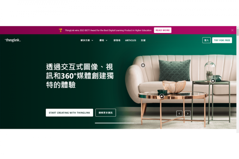Thinglink是一款多媒體創作工具,使用者能輕鬆的將照片、影片、文字等連結至上傳的多媒體素材中成為互動標籤,能夠建立精美的一頁式簡報甚至是360度VR導覽。Thinglink藉由網頁瀏覽器即可進行操作,無論是使用平板、手機亦或是您的電腦皆可以輕鬆對數位內容進行編輯,並提供多種範本及教學幫助使用者輕鬆上手。Thinglink適合個人創作者、老師與學生以及公司企業等,讓您能製作最獨特的動態資訊教材及導覽。