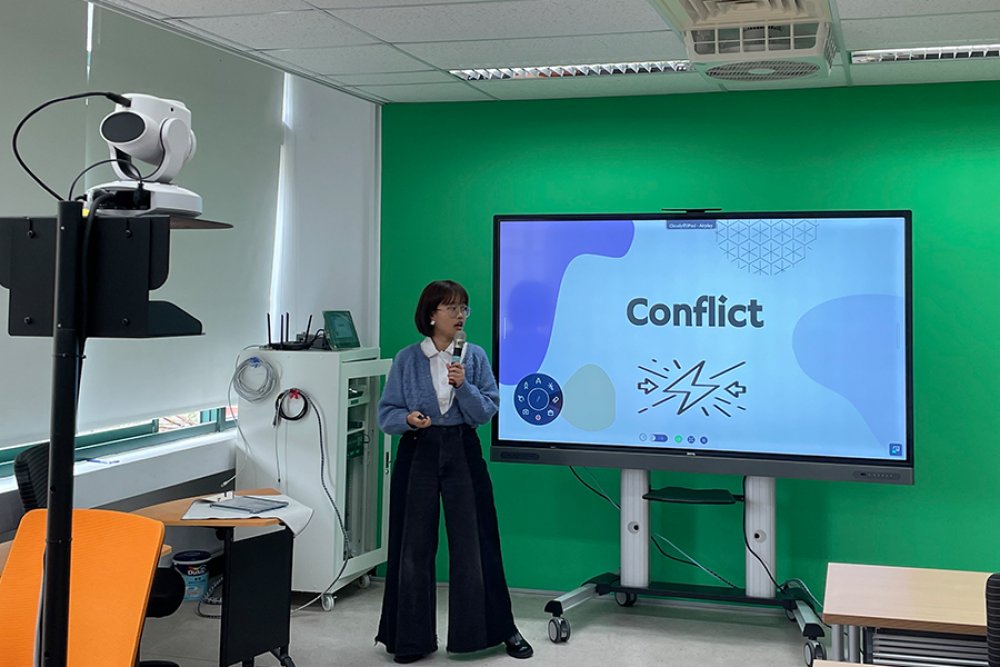 永和國中體育班國文教師任自薇表示,以前因常有同學請公假,教學節奏容易打亂,即使考前進行補課,但課程內容太多、學生學習成效有限。自從學校導入智慧錄播設備後,不但不影響老師教學,學生也能透過雲端系統自主補課、照顧到課業,對學生來說真的是很貼心的科技服務。女子籃球隊的同學說,有了這套系統,可以在家用手機或電腦補課,還可以反覆觀看不會的地方。