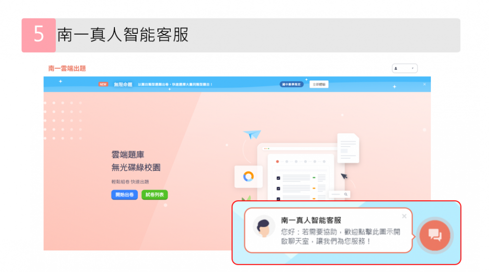 南一書局公司營運面向多元,自教育出版出發,向外延伸至數位媒體、營隊學能、評鑑中心、華人文創、角色經紀,以「教育綜合體」為目標,致力於提供臺灣師生全方位的教育服務。