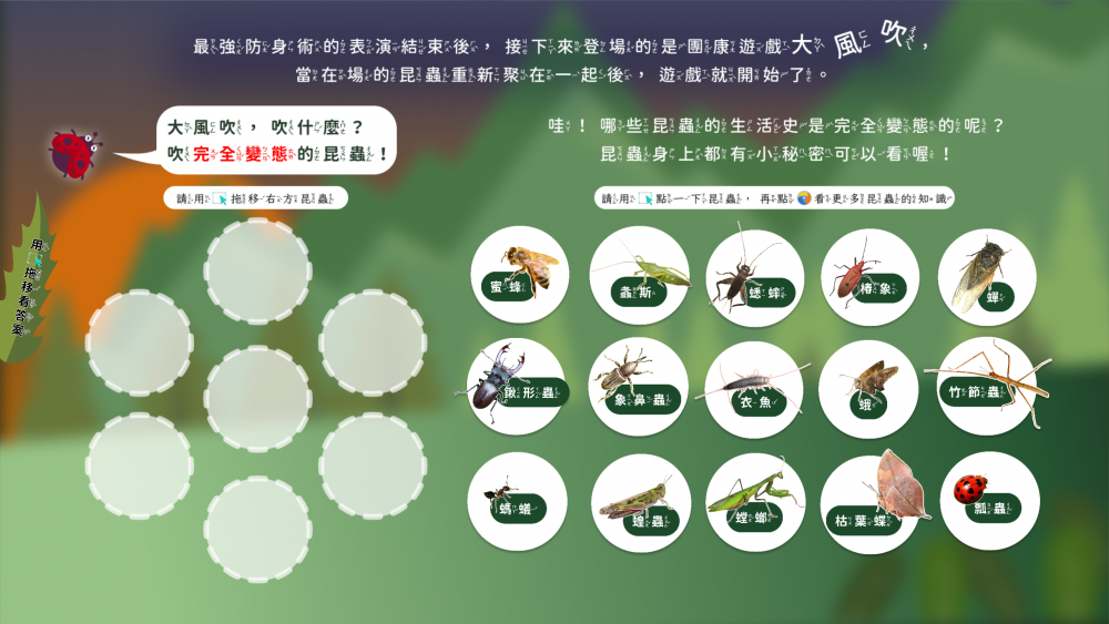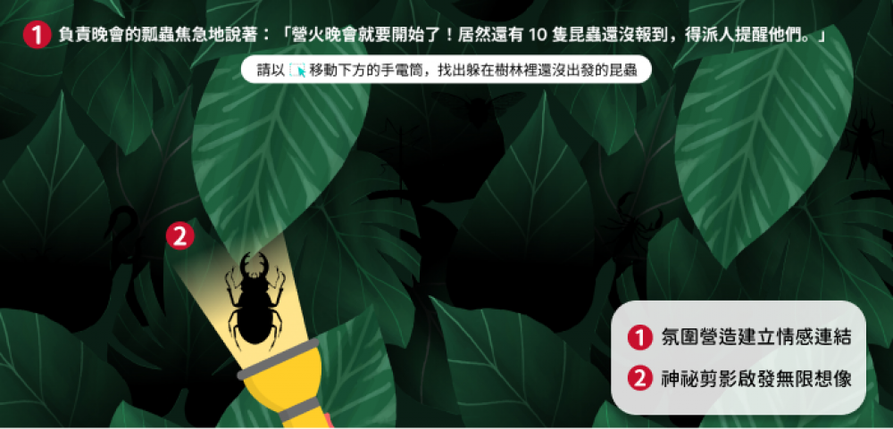 與故事中擬人化昆蟲角色對話,建立情感連結
