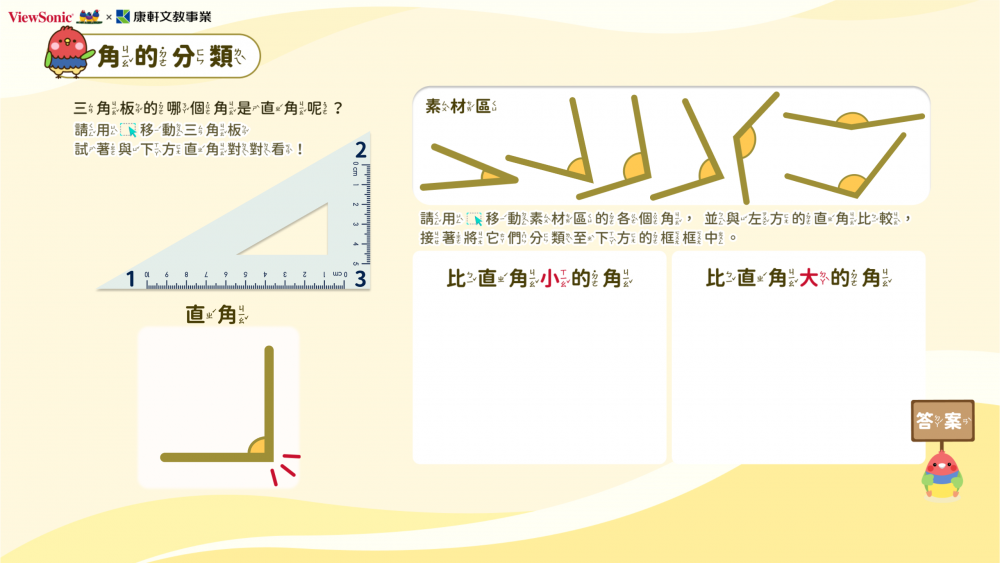 數學一直是國小生在學習過程中面臨的一大挑戰,而這套教材突破傳統框架,結合了康軒出版社深入淺出的課程設計與 myViewBoard 強大的互動功能,讓數位科技為數學教學提供了更多可能性。透過多媒體的應用和豐富的圖像,並依據真實情境設計各式關卡,讓學生能更具體地理解學科知識,使學生在遊戲中學習並懂得應用所學,讓他們從小就能夠在生活中體驗數學的樂趣,進而激發學習興趣和動力,打下更為堅實的學習基礎。