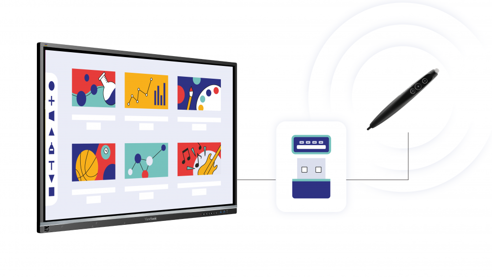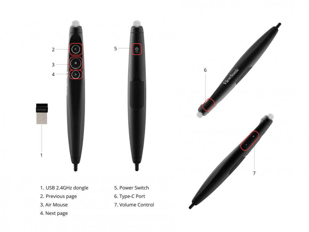 全球第一支,真的簡報筆!ViewSonic AirPen 簡報筆 (VB-PEN-007) 是一款真正可書寫在電子白板上的多功能簡報裝置,將您的簡報展演體驗提升至嶄新的境界。透過無線接收器隨插即用,全方位具備簡報所需功能,如:遠端滑鼠游標、投影片切換和重點指示,並可以直接在任何 ViewBoard 或相容的觸控螢幕上進行劃記書寫,享受最自然流暢的簡報展演體驗。