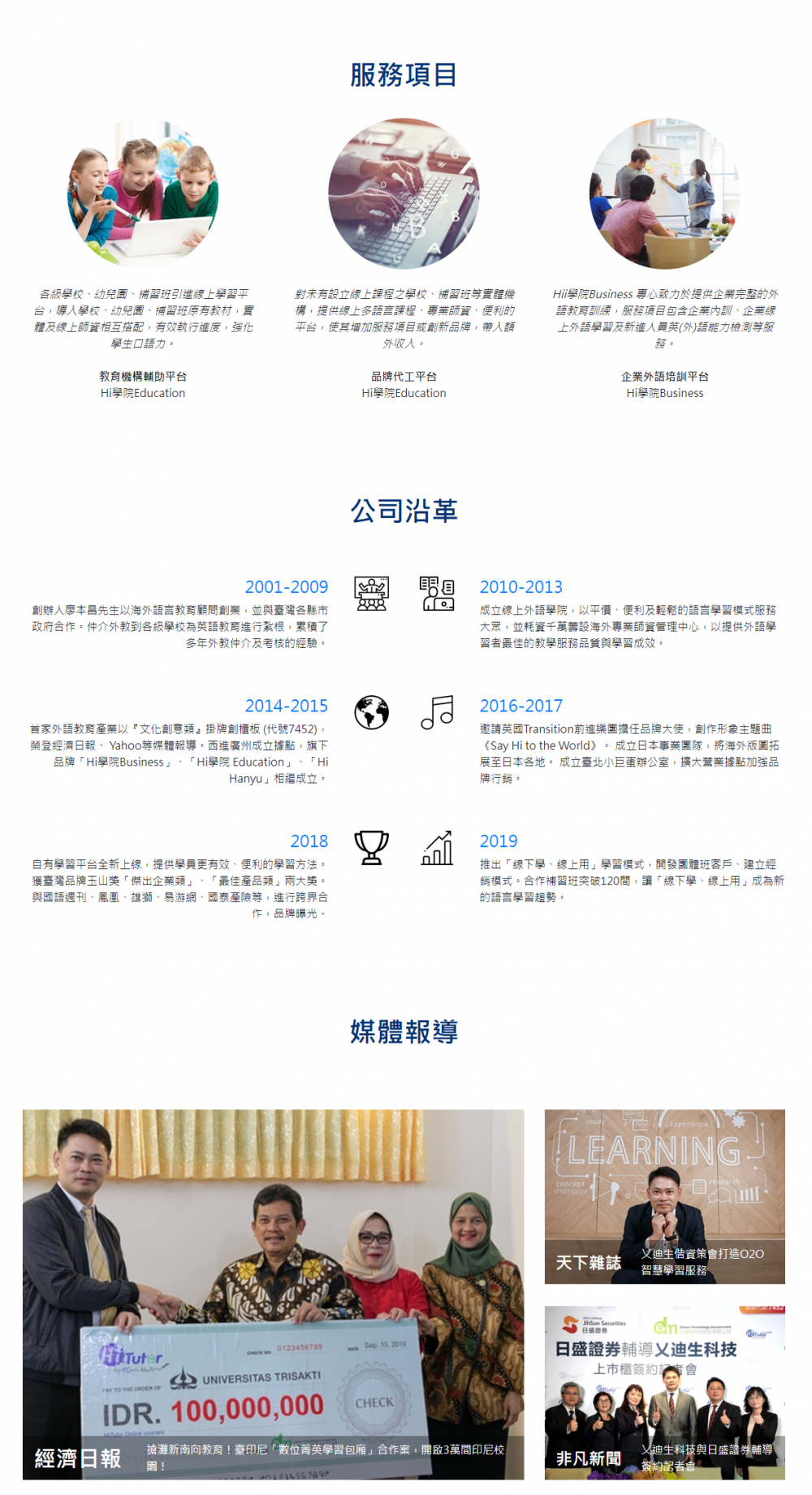 旗下杜威外師網、杜威遊留學、Hi家教線上外語家教,不僅提供學員不同面向的語言學習服務,更擁有廣大的外語師資人才資料庫,不論學校、補習班、企業外派、線上學習,都能滿足各種需求。
