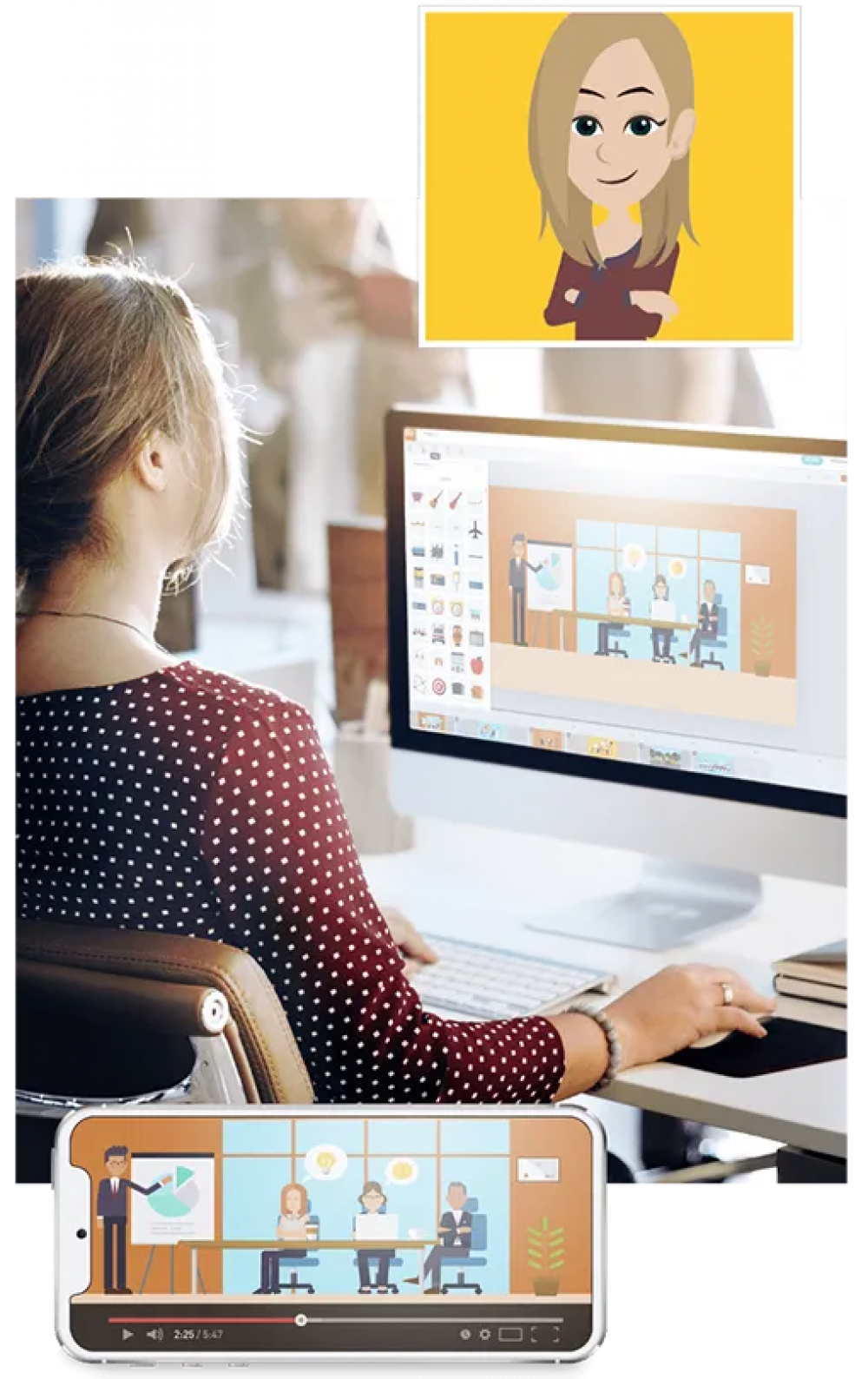 透過模板、聲音、元件庫等輕鬆創造動畫影片