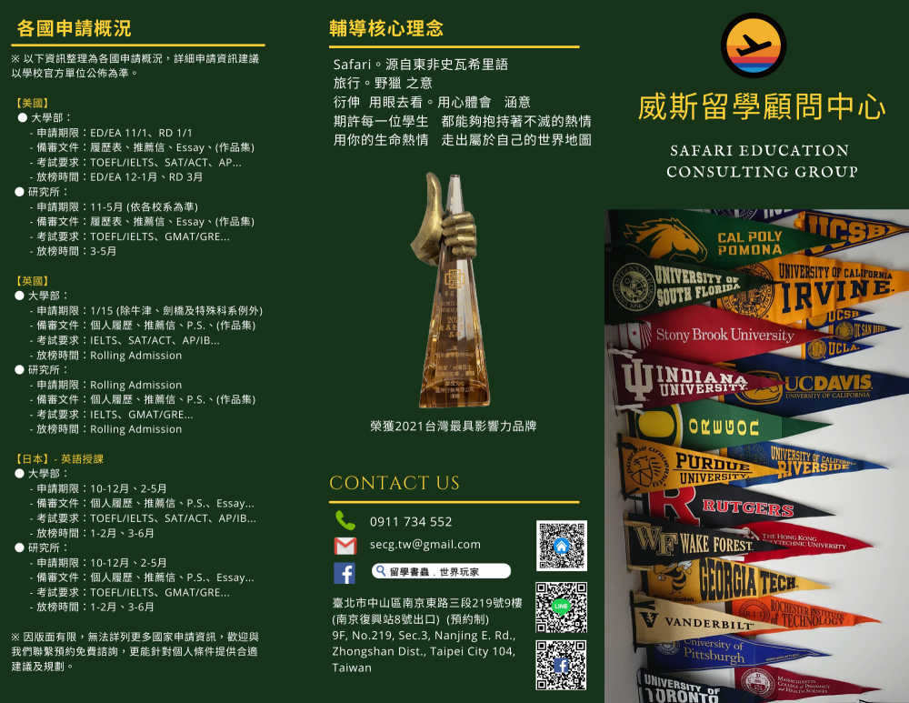 ※ 國外大學、研究所申請輔導服務(可私訊)
