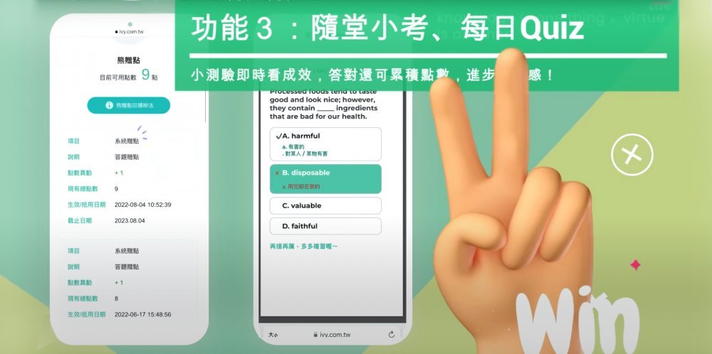 每日提供「Daily Quiz」答題機會,每天給自己小小的挑戰,答對同樣可獲點數獎勵,可直接折抵購書,進步更有感!
