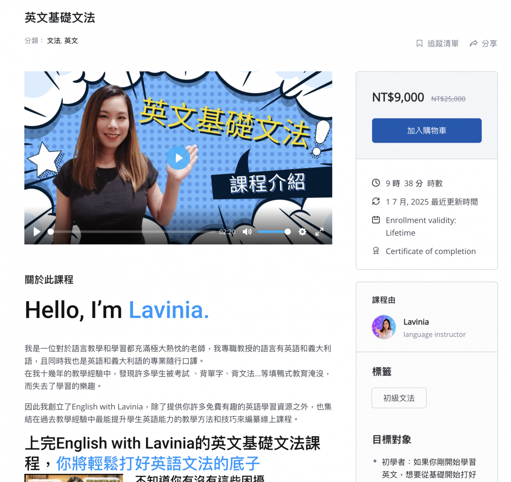 English with Lavinia的英文基礎文法課程